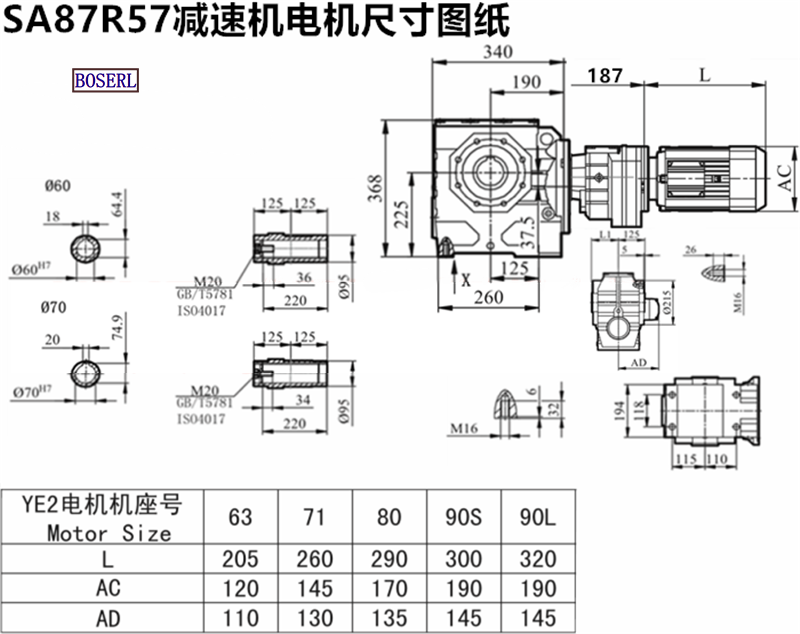 | 蝸輪蝸桿減速機 | SA88R58YP80M4 | SA88R58DRE71S4 | SA88R58DRL71M4 |